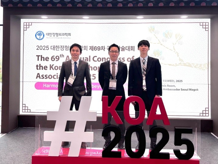 2025年10月16日から18日にかけて、韓国のソウルで開催された”The 69th Annual Congress of the Korean Orthopaedic Association 2025”に、日本整形外科学会のトラベリングフェローとして参加いたしました。韓国の若い先生やアジア諸外国の整形外科医の高いレベルの発表を拝聴し、活発な討論に感銘を受けました。プレゼンテーションや講演は英語で行われ、異なる国で医療に携わる医師が共通の言語で医学知識を共有し、議論を深めている様子は大変印象的でした。参加した3名もそれぞれの専門分野に関する発表を行い、議論を通じて今後の診療や研究に役立つ貴重な経験を得ることができました。